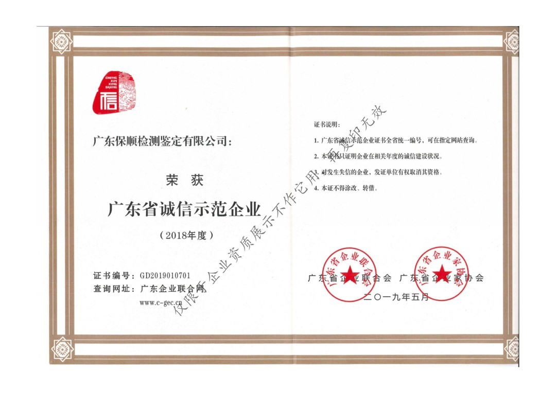 廣東省誠信示范企業