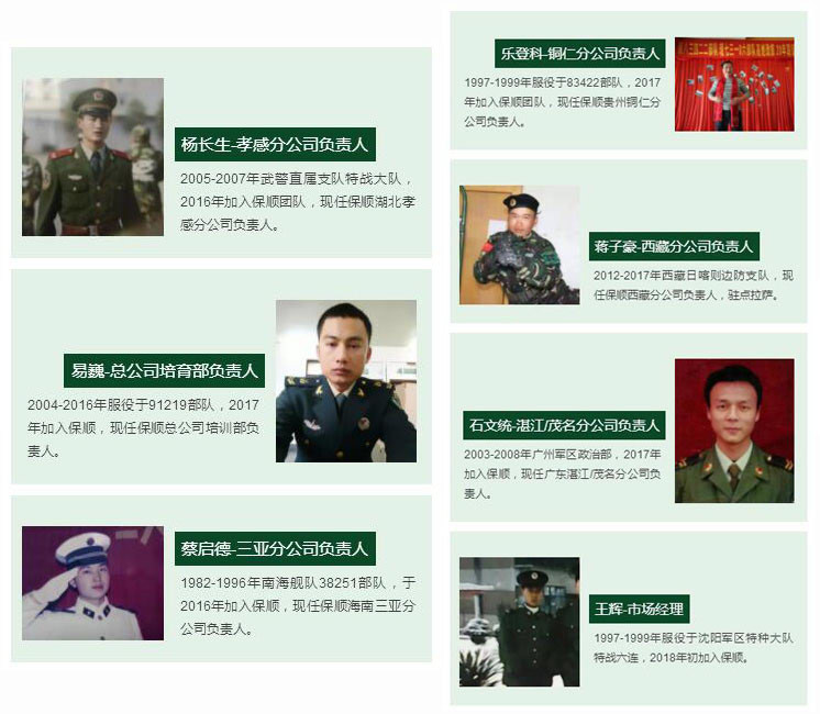 軍人把自己寶貴的青春歲月,獻給祖國的國防事業(yè)。當卸下了軍銜、脫下了綠色的軍裝退伍離開后,不應(yīng)該只能從事保安、建筑等單一行業(yè)。廣東保順檢測鑒定有限公司熱忱歡迎各位退伍精英加入我們的團隊,繼續(xù)拼搏實現(xiàn)人生夢想!
