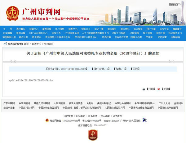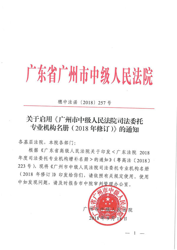 關于啟用《廣州市中級人民法院司法委托專業(yè)機構名冊(2018年修訂)》的通知
