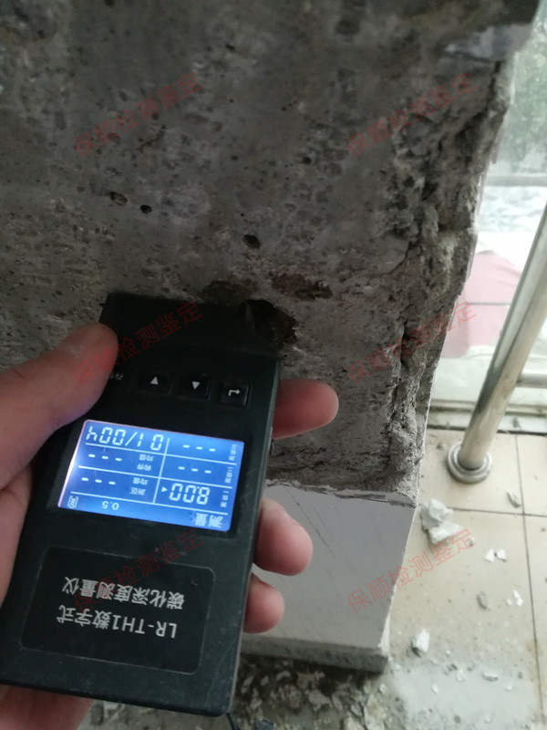 混凝土碳化深度檢測(cè)(圖片來(lái)源:廣東保順檢測(cè)鑒定有限公司房屋檢測(cè)鑒定項(xiàng)目現(xiàn)場(chǎng))
