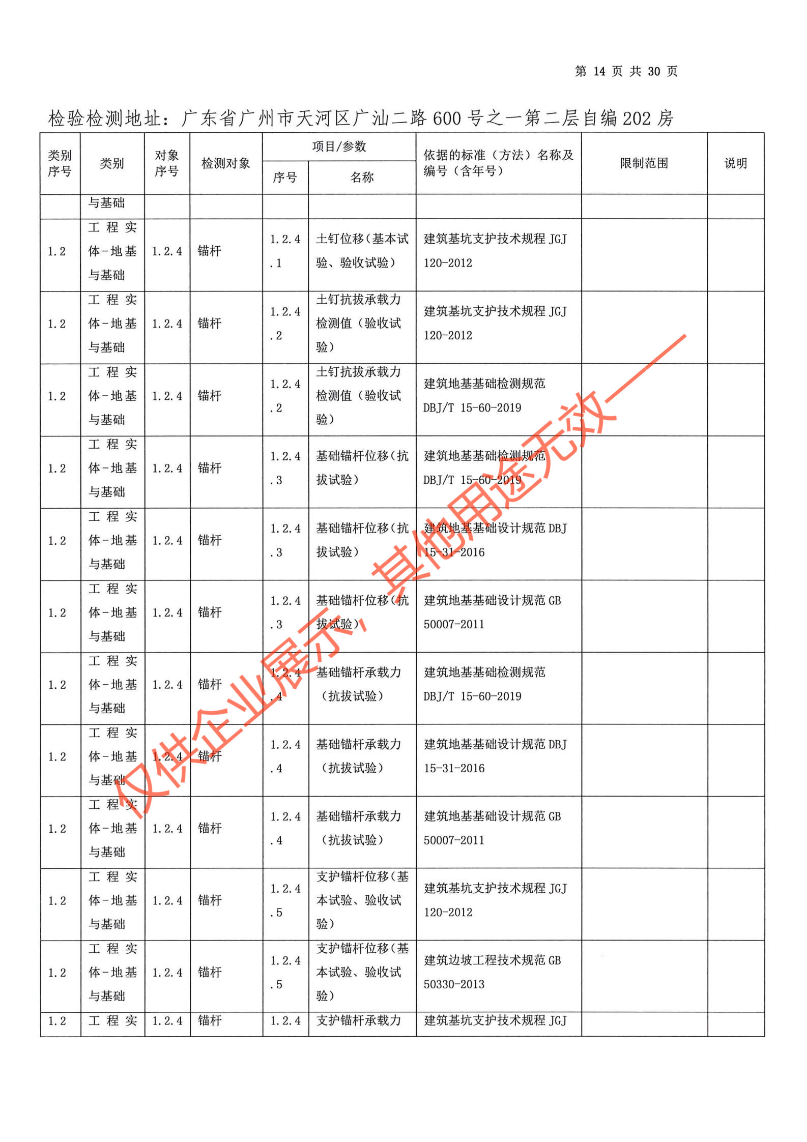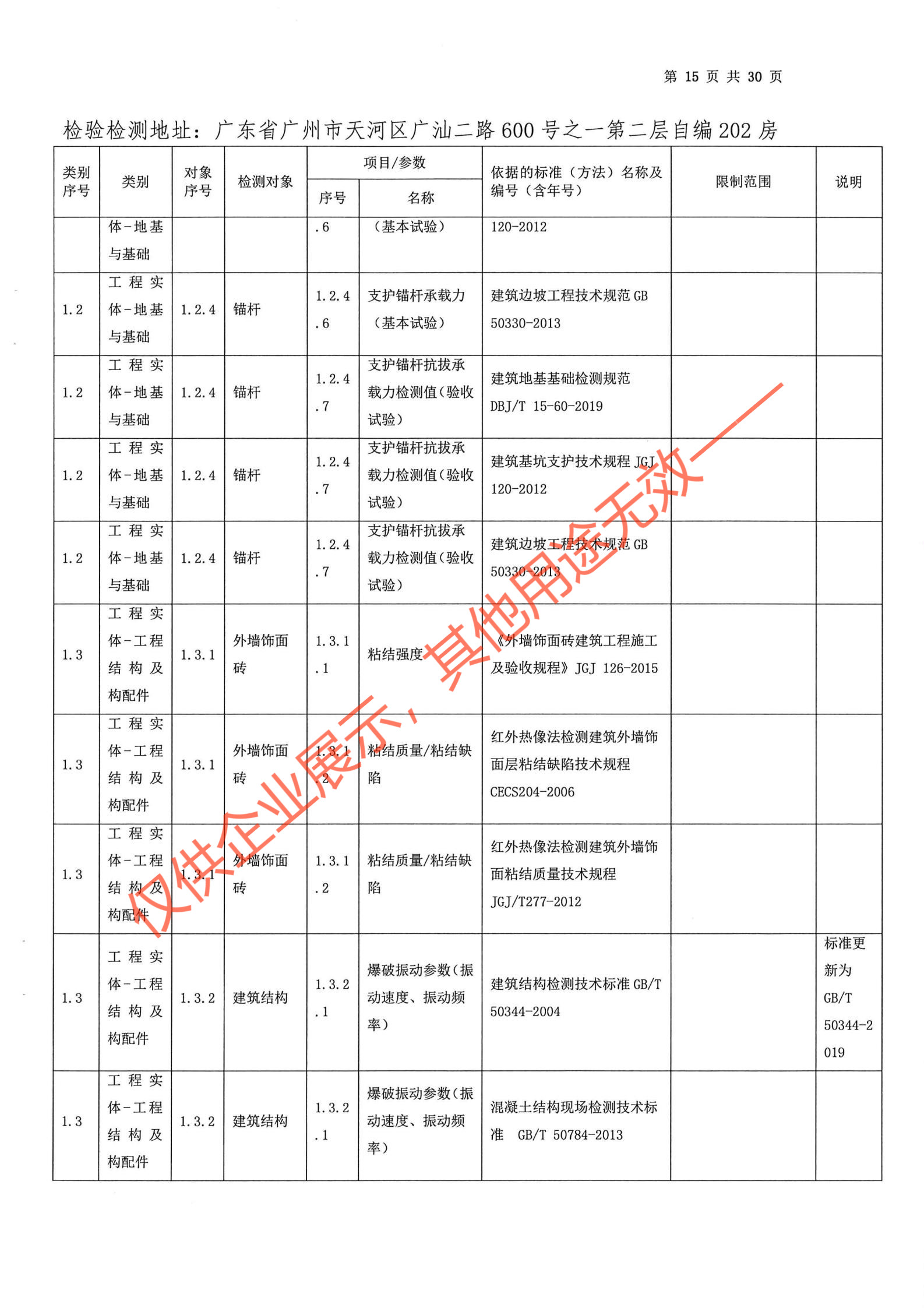 CMA資質認定計量認證證書新擴項檢測內容如下(圖):